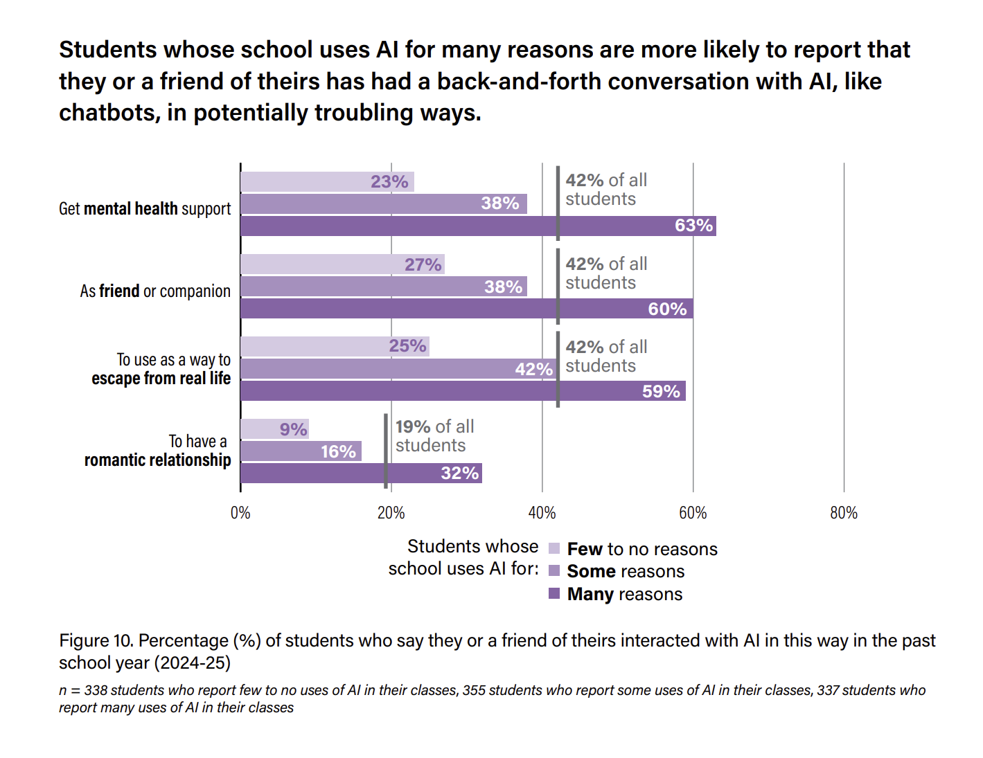 One finding from the Center for Democracy and Technology’s recent report stopped the room: in high-AI districts, students use AI as a companion at double the rate of low-AI districts (63% versus 25%). The same pattern holds for mental health support.